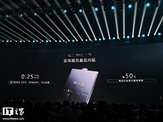 昨晚发布的第三代神行超充电板,据称具备“释怀满电 6 分钟”的特点。同期,第三代神行超充电板领有“大家超充最低内阻”平均 0.25mΩ,比较行业其他超充电板裁汰 50%。
