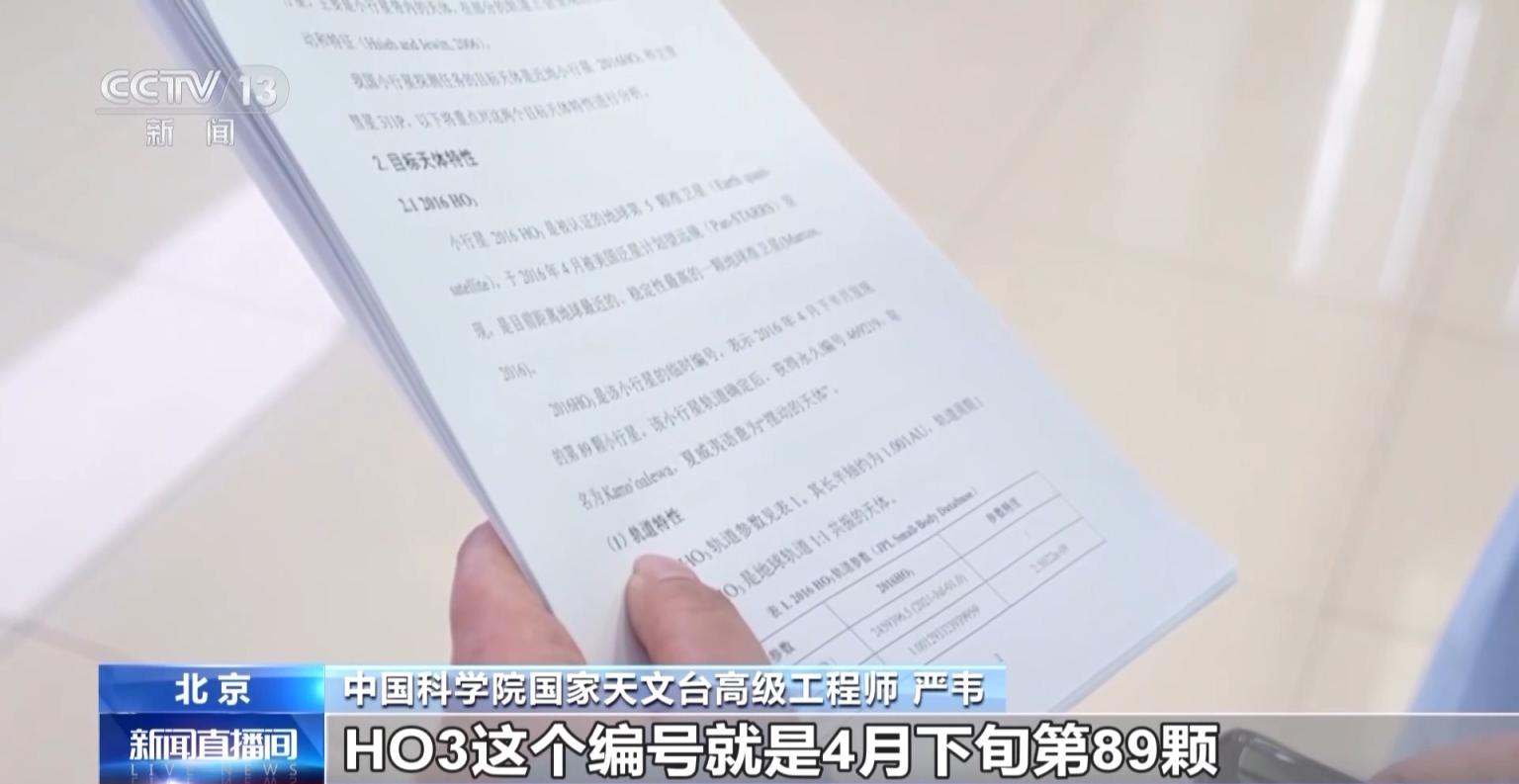 中国科学院国度天文台高档工程师 严韦:2016HO3实质上是一个临时的编号,2016代表它是在2016年被发现,HO3代表它发现的月份和在这个月份上发现的章程。