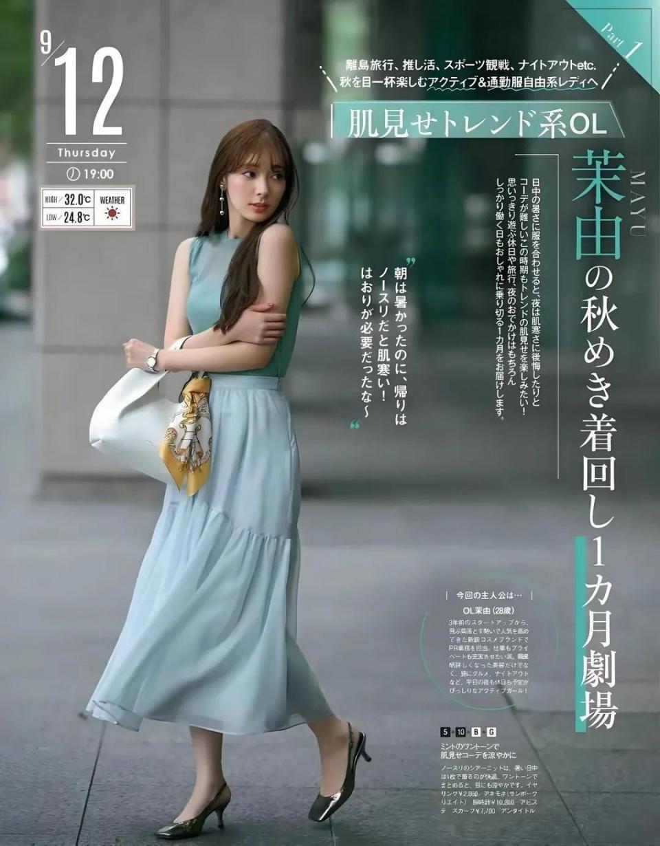 不外我们在聘用裙子的时辰,长度一定要盖过膝盖到小腿肚的位置最好,举例底下用浅绿色的无袖上衣搭配上浅蓝色的薄纱款伞状半身裙,脚上穿了一对穆勒鞋,组合上大浪潮的鬈发造型,暄和多礼又有女东谈主味。