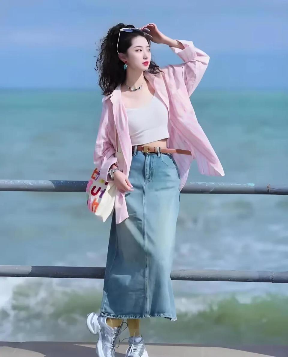 领有好体魄的你,在这炎暑的夏日确乎可以展现出我方的上风,比如底下这位达东谈主就用了一件浅粉色的衬衫,内搭白色的短款吊带和一条蓝色的牛仔直筒半身裙,这么的露脐穿搭能更好的展现出小蛮腰,变得愈加年青有活力,这位博主照旧是一个孩子的前卫辣妈,但看起来依然年青有活力。