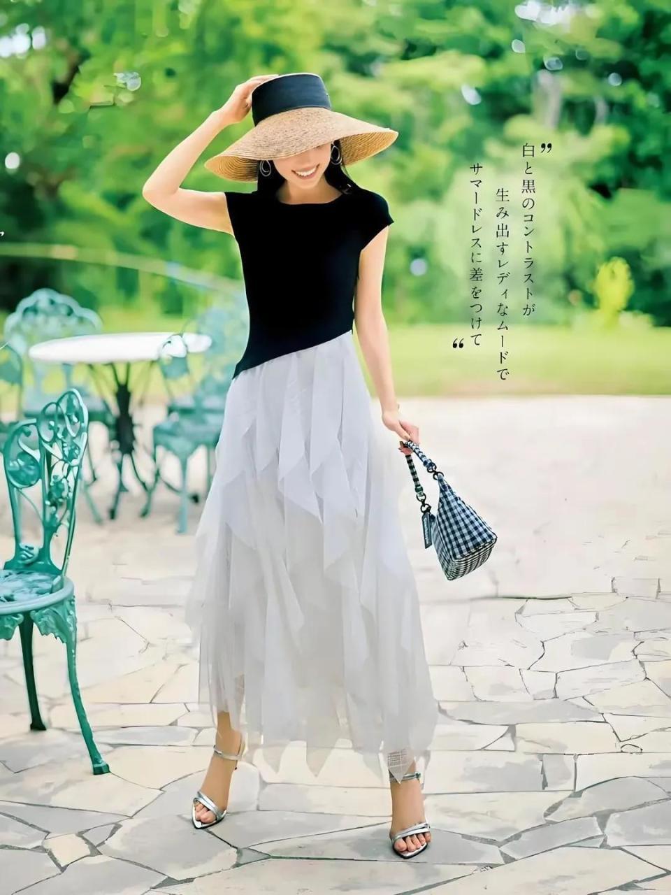 是以说有的时辰一稔的面料裙子的项目面料不同,穿出来的恶果有着一丈差九尺,举例底下这一条白色的连衣裙,作念了一个端倪感比较好的剪辑贪图,穿在身上之后就很个性,仙气飘飘,头上再戴了一顶凉帽,氛围感奏凯拉满。