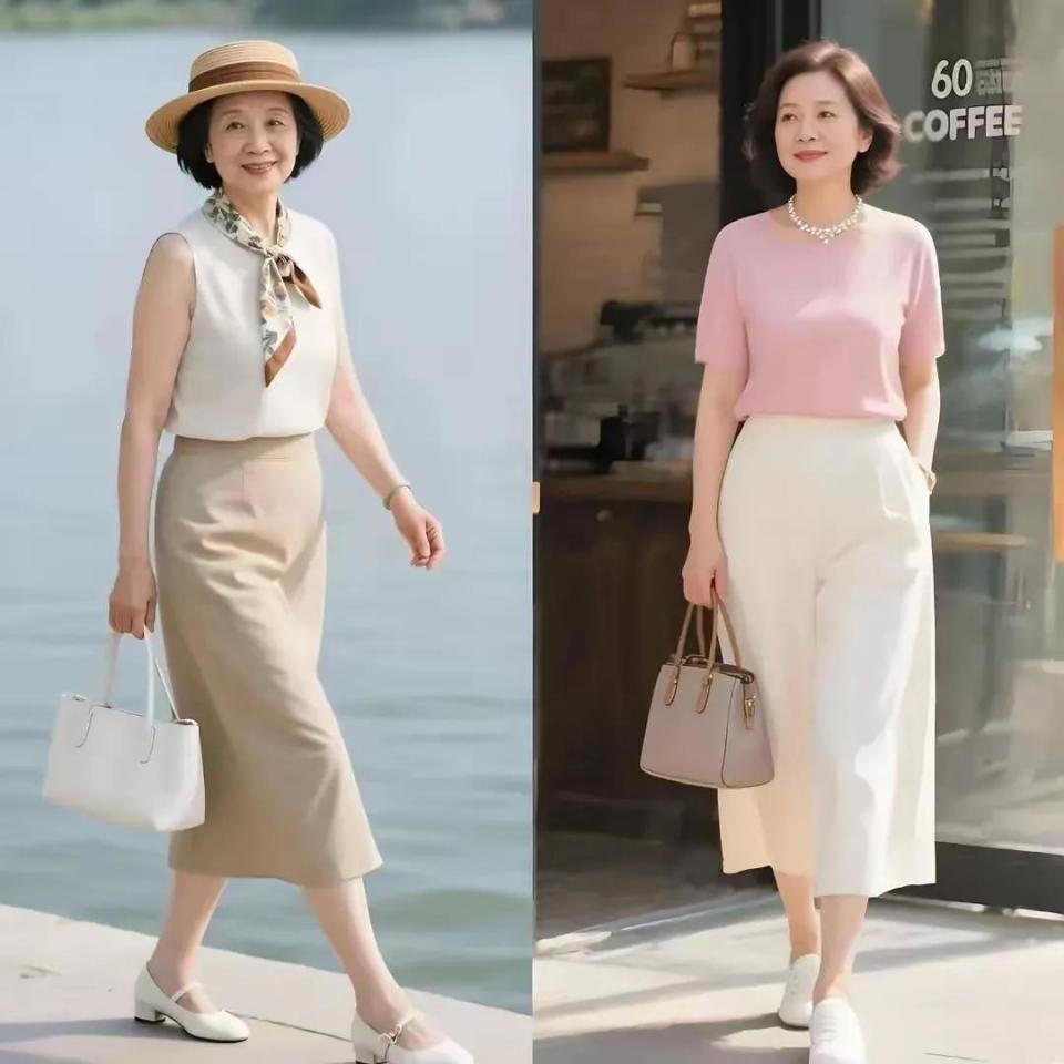 思让我方的东谈主显得年青,可以聘用浅粉色的小众衬衫上衣,搭配上棕色的缎绸面料直筒半身裙,脚上穿了一对棕色的高跟凉鞋就够。