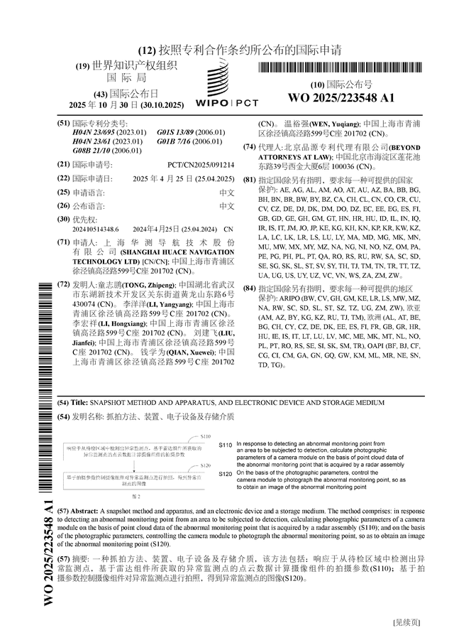 证券之星音书,阐述企查查数据默契华测导航(300627)公布了一项海外专利央求,专利名为“捏拍活动、安装、电子确立及存储介质”,专利央求号为PCT/CN2025/091214,海外公布日为2025年10月30日。